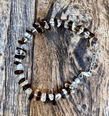 Pretty 925 Sterling Silver 65cttw Raw Clear Quartz and Smokey Quartz Bracelet