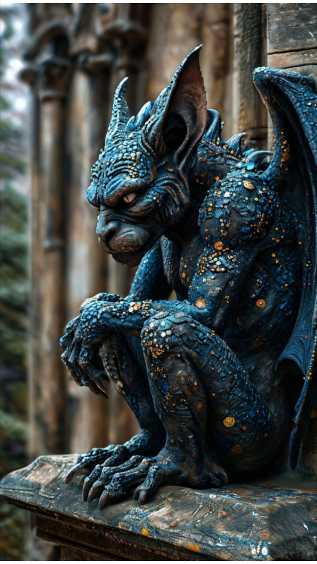 Grymaltheon, the 510-year-old gargoyle of balance, is more than a stone sentinel—he is a paradox made flesh: frightening yet kind, silent yet deeply wise, carved from stone yet filled with heart. To his keeper, he offers not only strength and vigilance, but the comfort of knowing that no shadow, no fear, and no ill intent will ever pass his watchful gaze unchallenged.